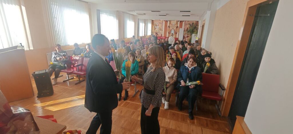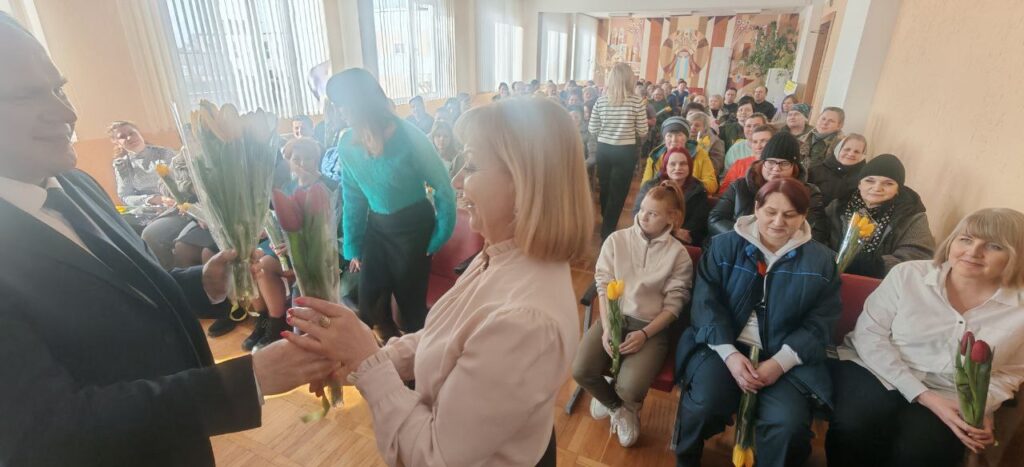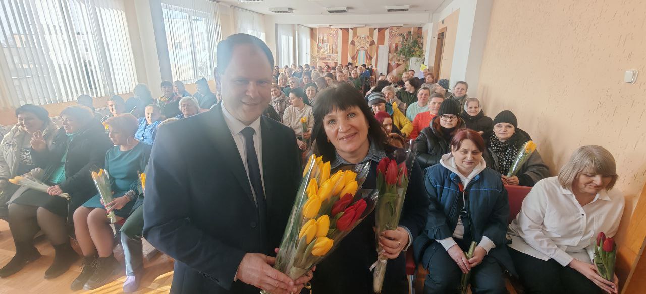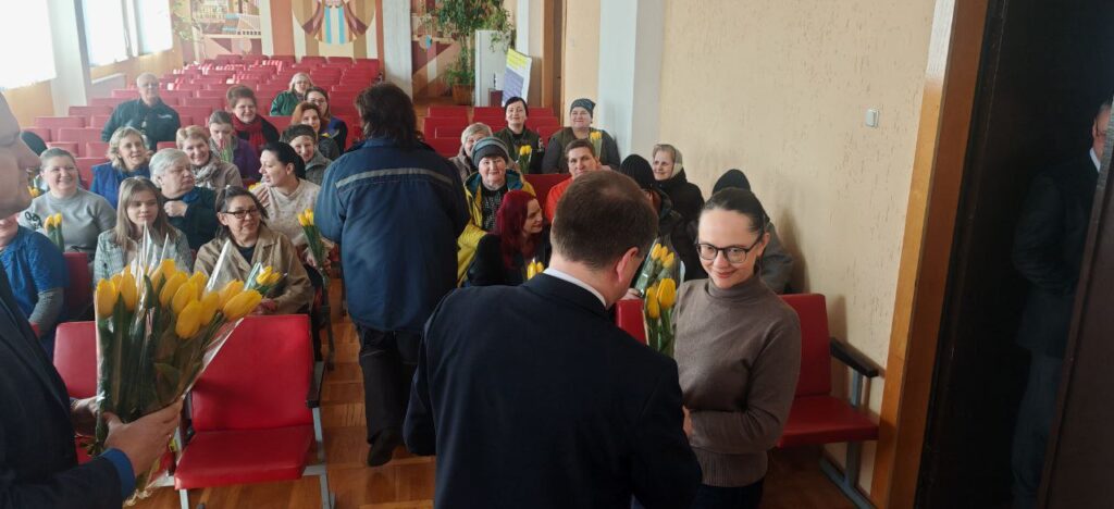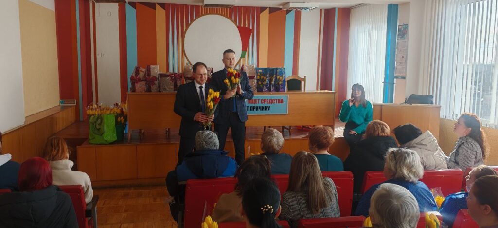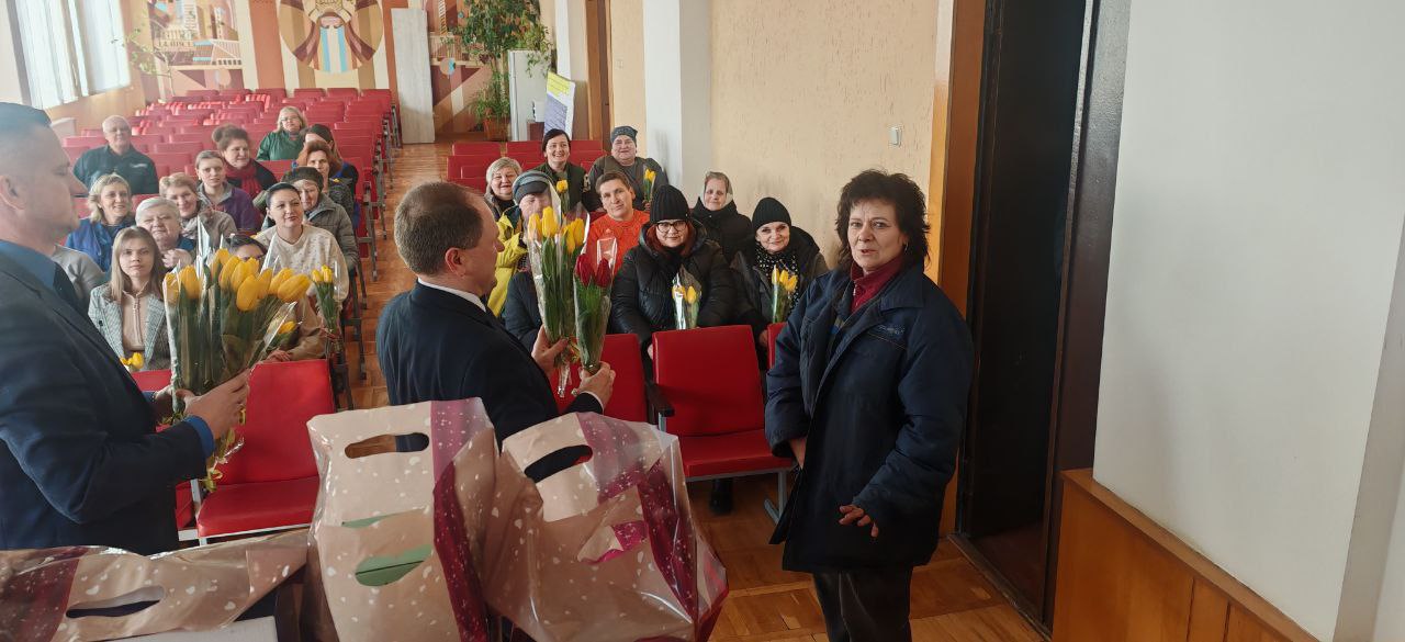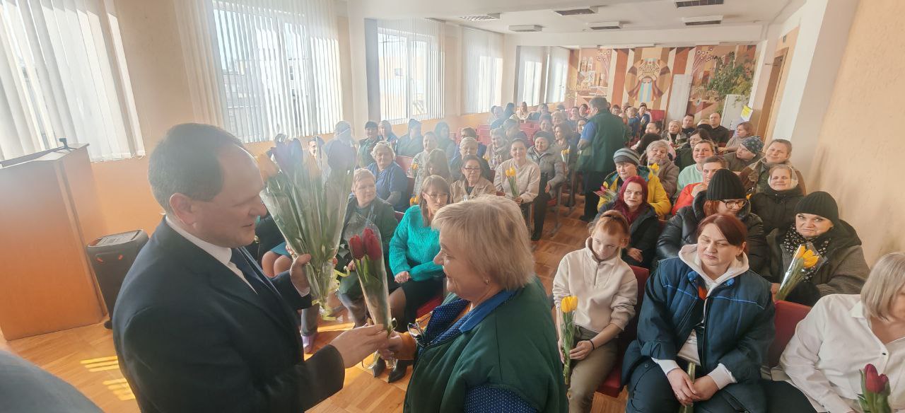 В преддверии 8 Марта в «Универсал Бобруйск» случилось настоящее, душевное чудо. Директор Сергей Александрович Гайшун и заместитель директора по идеологической работе Сергей Александрович Кипель лично поздравили всех женщин предприятия!